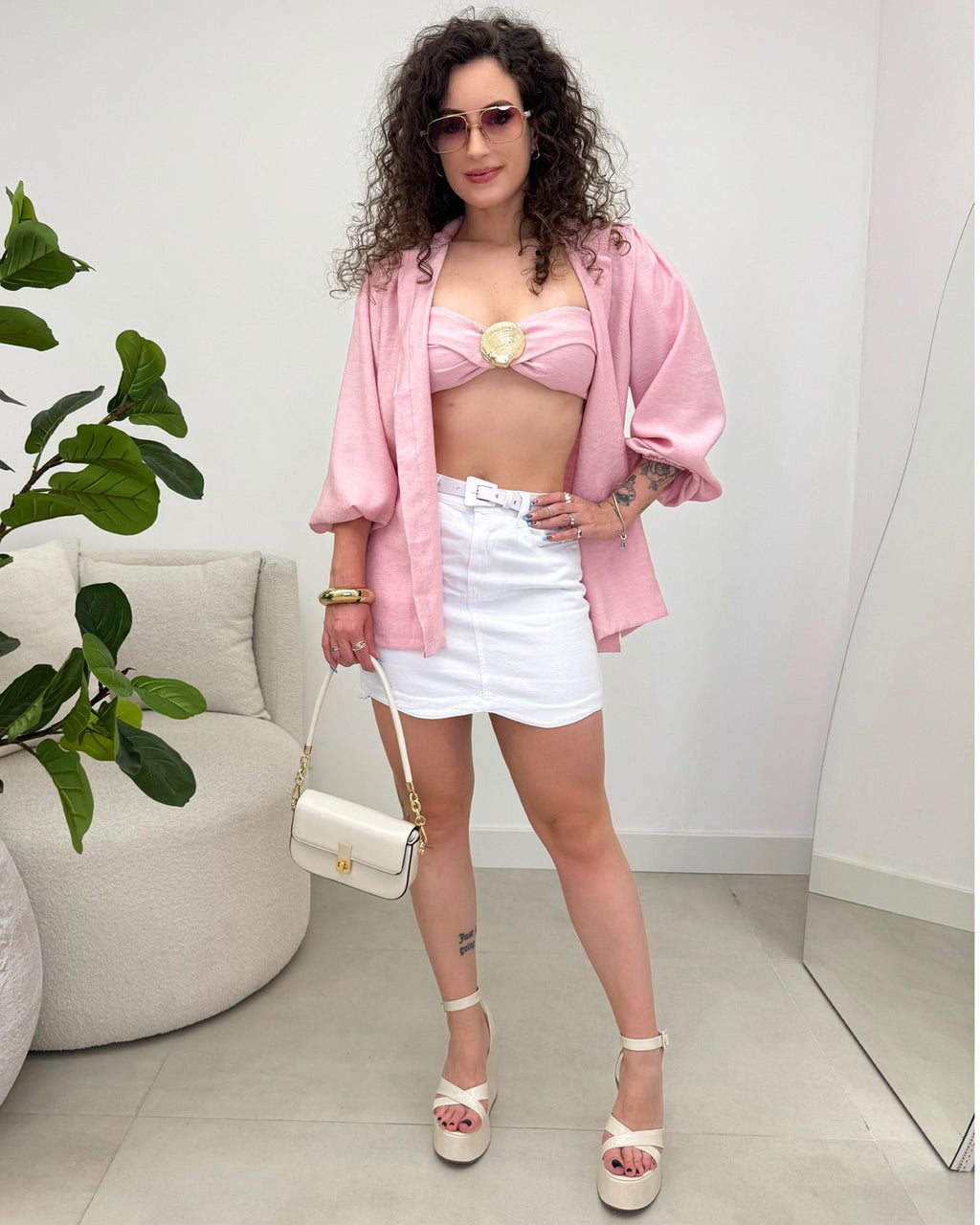 • Conjunto composto por Cropped e Camisa;